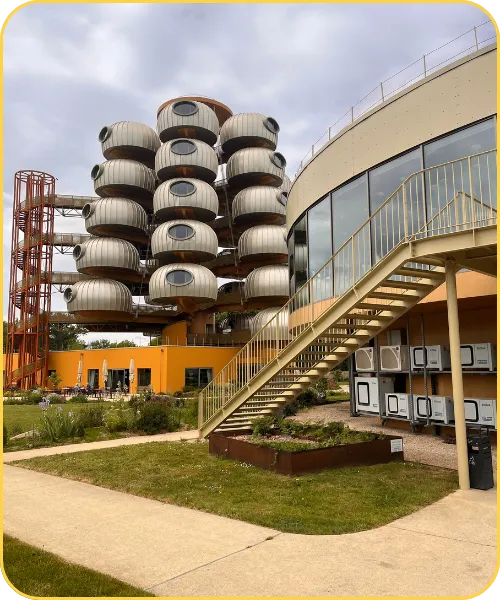 Pour prolonger l’expérience, l’hôtel-spa L’EssenCiel** invite au repos et à la contemplation. Ses chambres perchées au design futuriste offrent une vue imprenable sur la campagne bretonne, complétées par un espace bien-être et une piscine.